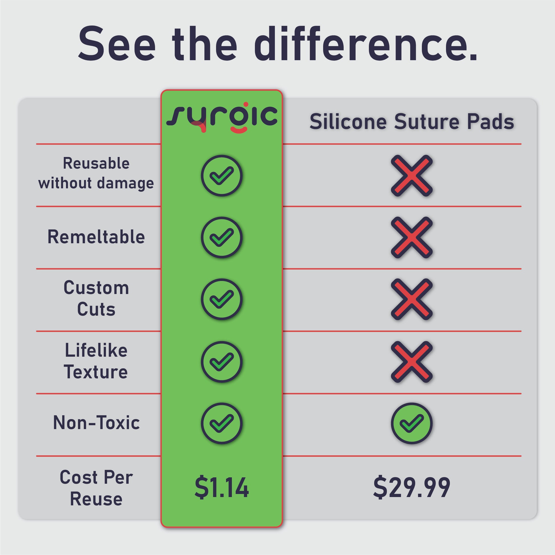 Silicone pads wear out. Each cut leaves a permanent mark, quickly filling the surface with holes and tears. Over time, stitches slip and edges crumble, forcing you to buy new pads or compromise on realism. Silicone pads can’t be refreshed, making practice less consistent.