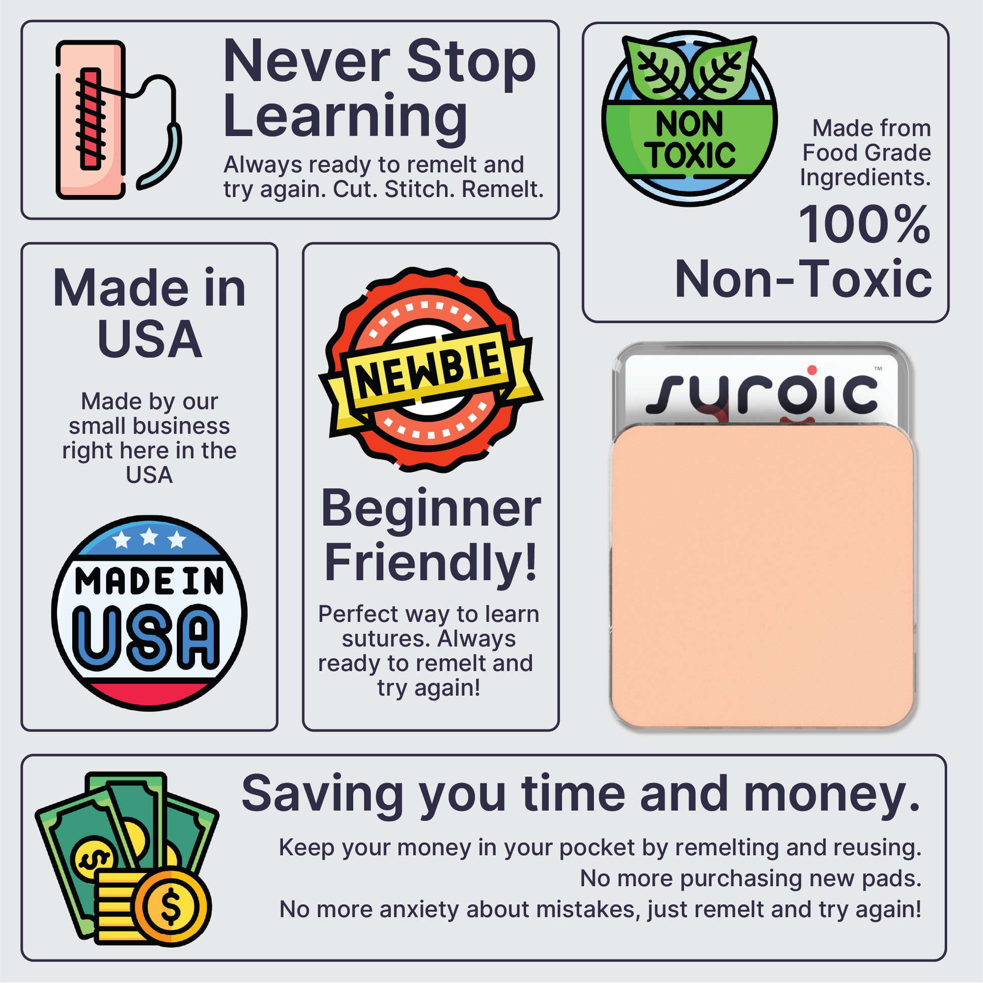 STITCH-PAD can be remelted dozens of times, giving you a fresh surface without ever buying replacements. One pad supports months of consistent training while staying as realistic on the 30th use as on the first.