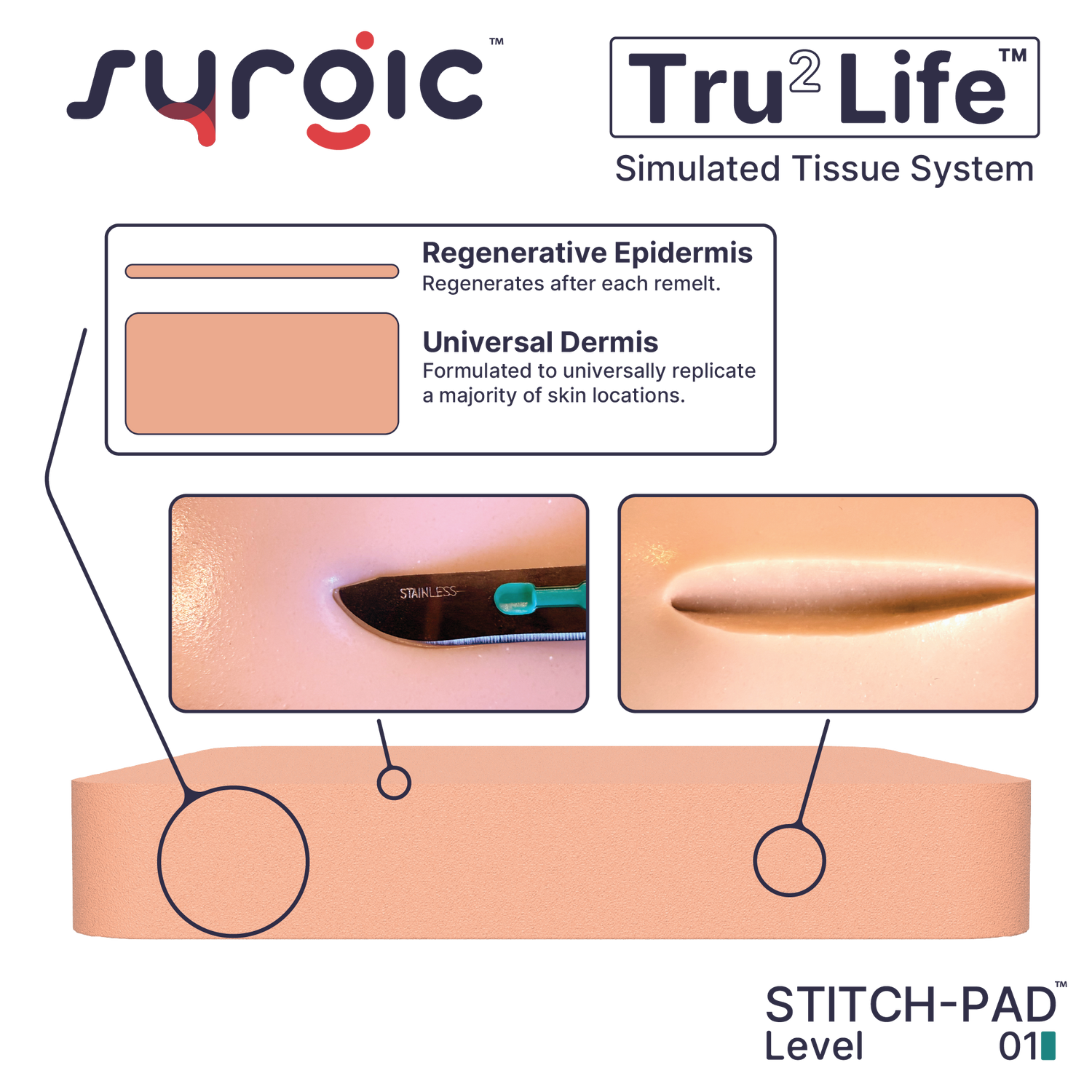 STITCH-PAD has the true feel of human skin. Pressure, sutures, and incisions all feel true, allowing you to more closely relate strategies and learning to the real-world.